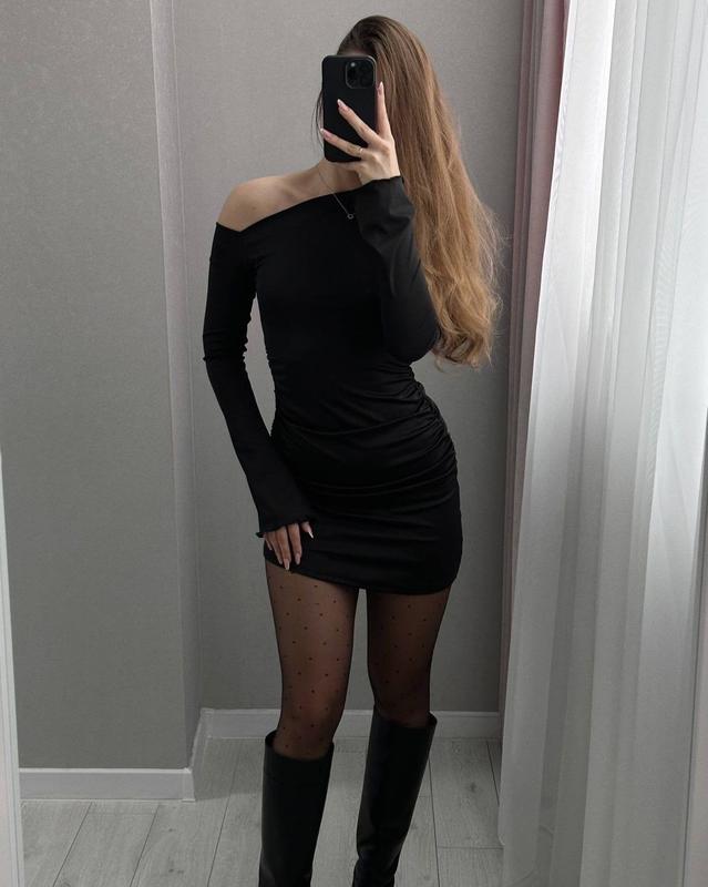 Фото Реал Сукня ▪️Мод: 766 ▪️Розмір: S-L (one size) ▪️Тканина: мікродайвінг ▪️Колір: чорний, білий Неймовірно жіночна сукня, яка гарно підкреслює фігуру🌟Тканина дуже добре тягнеться, гарно сідає по фігурі 📍Заміри 42-46 Довжина - 80(за рахунок затяжок регулюється) Груди - 78-100 см Талія 58-78 см Стегна - 88-102 Рукав від шва - 63 см Тканина дуже добре тягнеться Ціна 660 грн