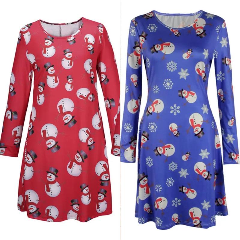 Новогоднее платье со снеговиком, платье новогоритрый принт