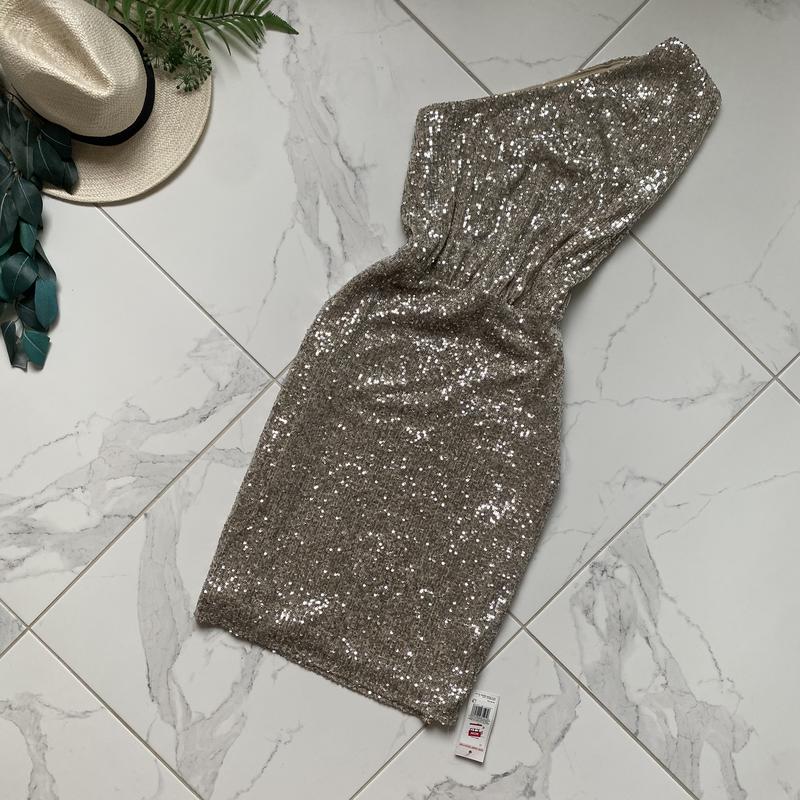 Сукня на срібна на 1 плече стан ідеальний, паперова бірка, збоку на замочку, нереальний перелив р 10 м -довжина 98 -нОг 49-54 -нОт 35-39 -нОб 50-57 ФОТО НА ТІЛІ НЕМАЄ