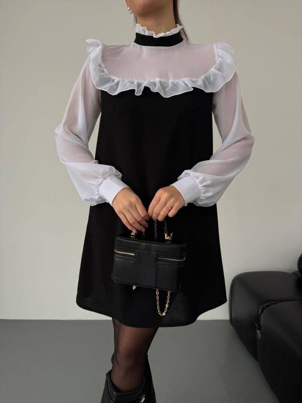 Сукня, фото реал 🏷️ Ціна - 1390 грн ⠀ ▫️Тканина: креп дайвінг, шифон ▫️Розміри: 42-44, 46-48, 50-52 ▫️Кольори: чорний з білим ⠀ Від романтичних вечорів до святкових заходів — ця сукня стане вашим надійним союзником в створенні незабутніх образів. Обирайте стиль, обирайте якість — обирайте нашу чорну сукню з легким білим шифоном та рюшиками! ⠀ Модель 168