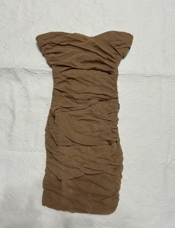 Сукня бюстьє бежевого кольору з драпіруванням. Дуже гарно сидить , за рахунок драпірування усуває недоліки фігури. можна також вдягати на футболку або лонгслів.