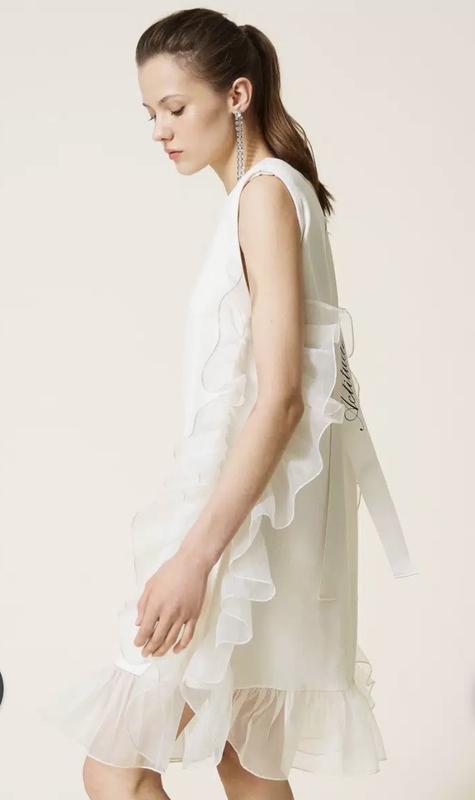 Сукня майже в ідеальному стані, без дефектів. Не пралася! Ціна на сайті була більш 5000 грн. Склад тканини на фото: 68% віскоза; 28% поліамід; 4% еластан. Вставки з органзи. Сукня без підкладки, 2021 року випуску. Довжина сукні 98 см Довжина плеча від горловини 12 см ПОГ під пахвами 45 см ПОТ 46 см ПОБ 49 см ПО знизу 54 см . Повернення немає. Доставка за рахунок покупця