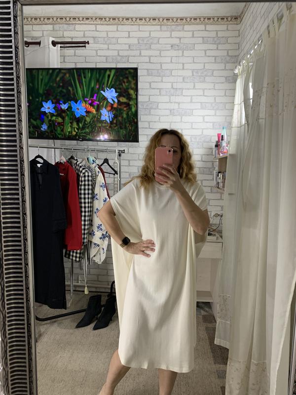Ідеальна, прохолодна сукня від COS в абсолютно новому стані! Виконана з трикотажної віскози і котону - 60/40% Крой 🔥, стильно і цікаво Розмір вказаний L По грудях 72, стегна 73, довжина 105 см