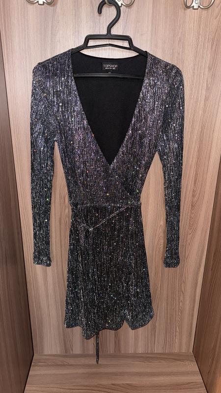 Сукня з блискітками, підходить для святкування Нового року. Стан ідеальний, не вдягалося ніразу. Рукави трішки просвічуються, інша тканина ні.