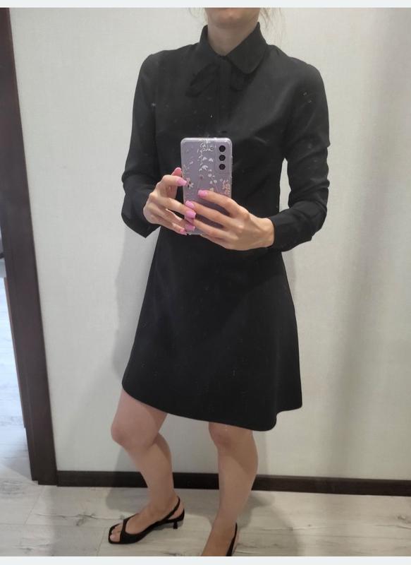 Классическое платье с воротничком. Черного цвета. Стан идеальный, ткань шифон. Обращайтесь за деталями.
