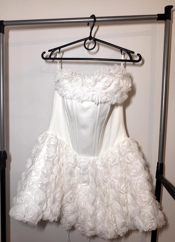 колір: білий / молочний • корсетний верх • пишна спідниця з квітами (троянди) • добре тримає форму . Розмір 42.44 До сукні ідуть шорти