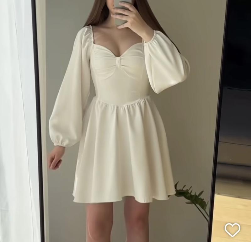 Плаття розмір S-M. Тканина якісна костюмка, Туреччина. Колір молоко. Груди 80-88 см. Талія 60-68 см. Довжина сукні 78 см. Довжина рукава 58 см. Нове ще з цінником