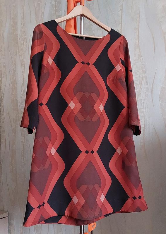 Очень красивое платье , силуэт А образный, сзади рабочая змейка, рукав 3/4, цвет в живую очень красивый в осенних коричневых тонах сиотрите последнее фото, размер указан Л, но и М будет хорошо немного свободней.