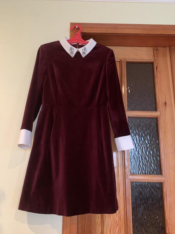 Бархатне бордове на підкладці оригінальне актуальне фірмове дороге плаття. Довжина 90 см,довжина рукава 58,плечі 40-41,Пот 38