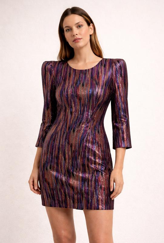 Замовляла з сайту за 50$(приблизно 2112 грн ) не враховуючи доставку. Стан ідеальний до нового, одягалось один раз на нг, та другий на фотосесію. Красиво сідає по фігурі, підкреслюючи талію та силует. Завдяки вертикальному мерехтливому візерунку фігура виглядає стрункішою та витягнутою. 🔹 Приталений крій 🔹 Довжина міні / трохи вище коліна 🔹 Рукав 3/4 🔹 Потайна застібка ззаду 🔹 На підкладці — комфортна в носінні Плечі: Мають невеликі м’які підплічники (приблизно 1,5–2 см) — лише злегка формують лінію плечей. Без масивного об’єму та без різкого ефекту 80-х. Силует виглядає акуратно, жіночно та елегантно. Матеріал: • верх: 80% поліамід, 20% поліестер • підкладка: 100% поліестер Розмір: EUR 40 (добре сяде на M–L) Стан: ідеальний, без дефектів У житті виглядає ще ефектніше, ніж на фото. Заміри: ПОГ: 48 см. ПОТ: 43 см. ПОБ: 55 см. Довжина сукні: 83 см. Плечі: 37 см, наплічники по сторонам +2,5 см. Довжина рукава: 52 см. Ширина рукава знизу 12 см, зверху 20 см.