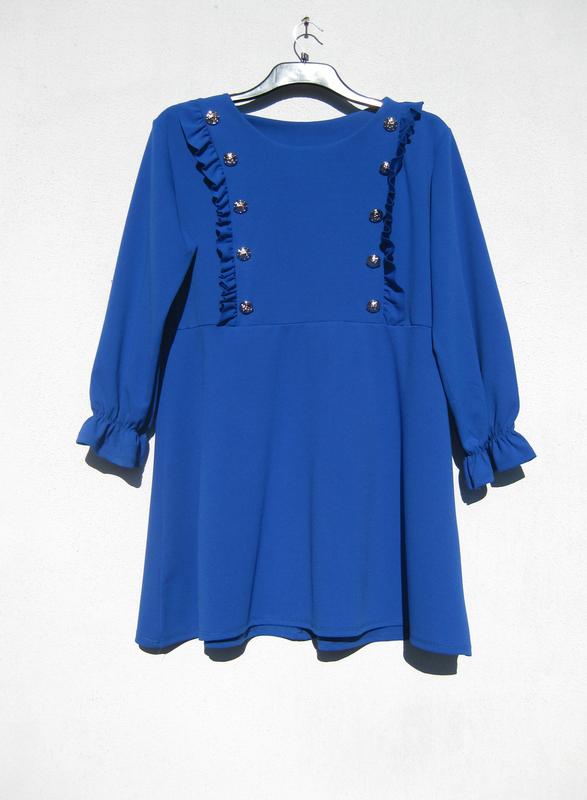 Синее платье с рюшами с пуговицами с широкими рукавами италия
