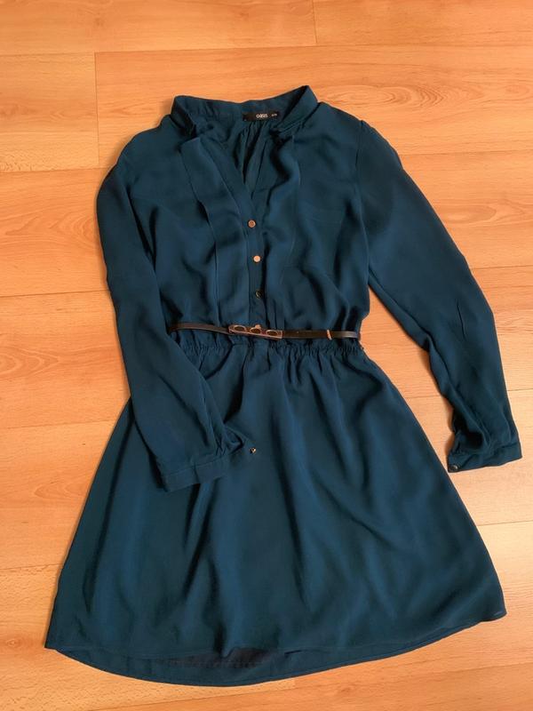 платье в идеальном состоянии, размер S Красивый бутылочно-зеленый цвет Состав - 100% вискоза Замеры: рукав - 56 см плечи - 33 см длинна - 84 см от подмышки до подмышки - 45 см талия на резинке
