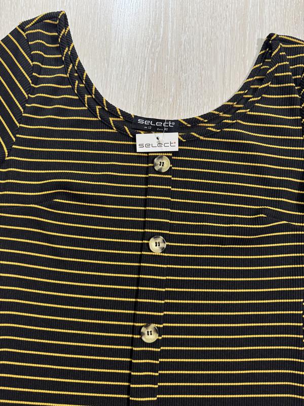 У наявності гарне плаття фірми SELECT Розмір вказаний 12, добре сяде й на 10. Склад: 95% поліестеру та 5% еластану, тканина добре тягнеться. НОГ-43 і ще добре тягнеться до 55, довжина плаття-87, напівоб'єм у талії — 36 і ще добре тягнеться, довжина рукава — 62, напівоб'єм у стегнах — 43 і ще добре тягнеться.