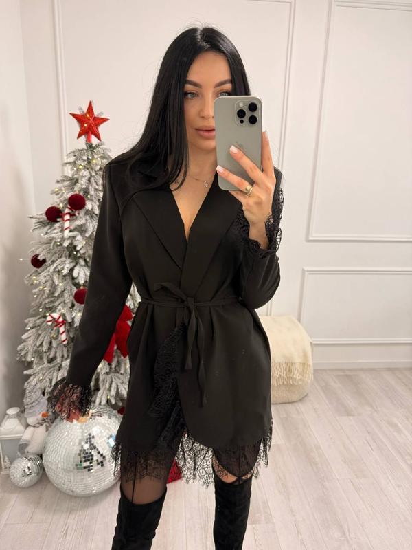 СУКНЯ-ПИДЖАК Модель:753-4962 Тканина: костюмка+мереживо Размер: one size (42/46) Цвета: черный и шоколад