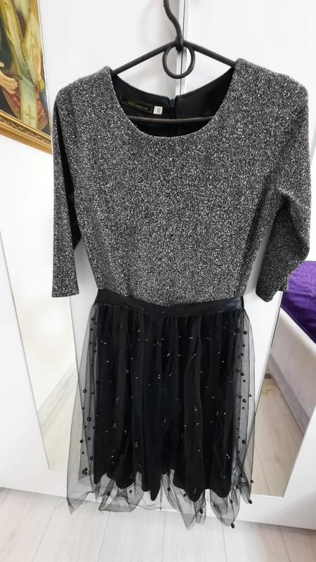 Коктельное платье, новое с биркой, верх с блестящей нитью, низ с фатином и черными жемчужинками, фатин снимается, показано на фото. Платье очень элегантное, вы будете непревзойденны в нем, размер s