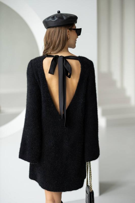 Елегантна в'язана пухнаста сукня з відкритою спиною - акцентний і жіночний образ для особливих випадків. М'яка текстура комфортно облягає фігуру, а декоративний шовковий бант додає витонченості та романтики. Ідеально поєднується як із підборами, так і з мінімалістичними аксесуарами. ▪️ size: 42-46 ▪️ colors: Бордовий Молочний Чорний ▪️ textile: нейлон, вовна, поліестер ▪️ art: FLUFFI
