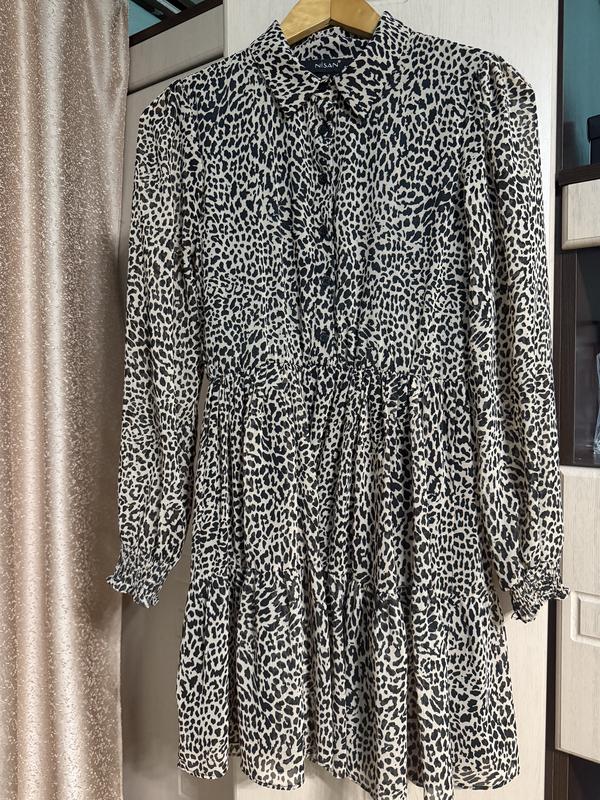 Шифонова леопардова сукня в розмірі S. Дуже легка і приємна тканина. Є підʼюпник . В мене зріст 158 то сукня вище колін. Додаткові заміри можу скинути в особисті. Вдягалась один раз.