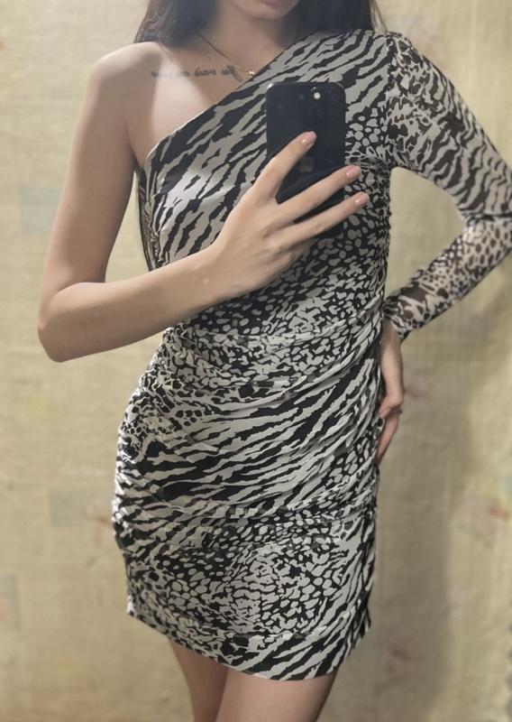 Сукня на розмір s , на одне плече з сіточки , є підкладка , не просвічує , стяжки по боках , виглядає дуже єфектно , нова з біркою