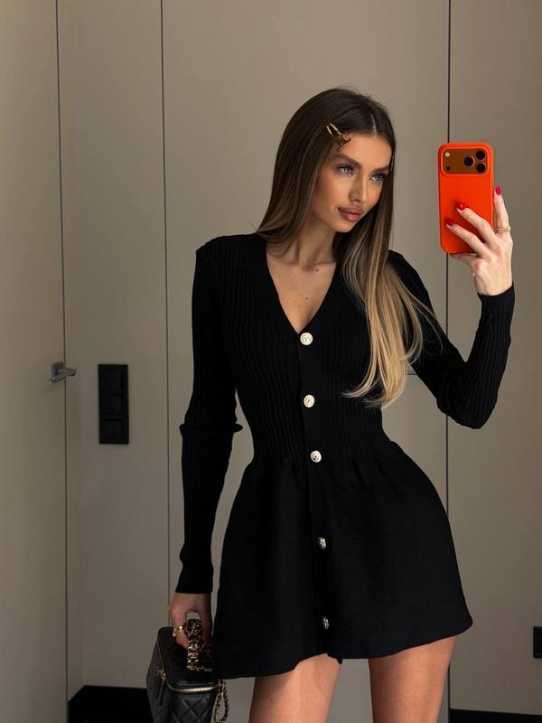 ✨НОВИНКА✨ ✅Арт 1068 Сукня, яка створює настрій 😍 Чорна міні з ідеальною посадкою, довгим рукавом та стильними перлинними гудзиками. Легка, жіночна та дуже вишукана — для тих, хто любить виглядати бездоганно в будь-який момент. Розмір універсальний S-L 📌 Деталі: • довжина 75 см, плечі 30-40 см, рукав 60 см • Тканина - поліестерне волокно, відмінна в'язка, добре тягнеться • Гудзики розтібаються 🏷️ціна 1240 грн