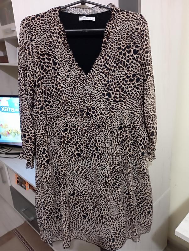 Платье в трендовый принт.с длинным рукавчиком.. внутри есть подкладка.Сукню покупала в Италии для себя, поэтому срезанная этикетка с содержанием ткани.горловина обработана оборочкой грудь-55 бедра-63 длина -90. рукава-48