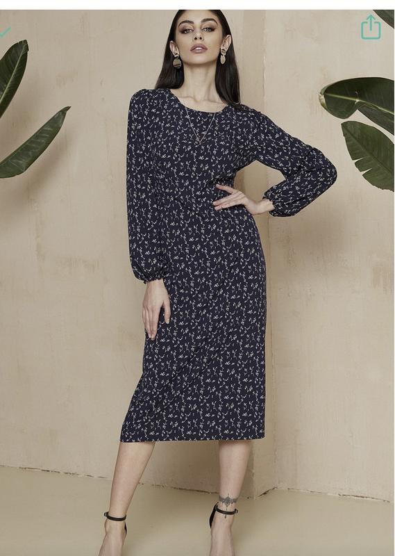 Жіноча міді сукня у дрібний візерунок. Тканина тонка, але лягає дуже гарно. Зручна, носила при вагітності. Підійде на зріст від 170, або треба зробити розпірку щоб зручно ходити. На розмір с-м.