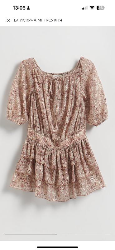 Сукня Reserved, злегка розкльошеного крою. Декольте з плеча, фронтальна шнурівка, застібка збоку, рукав 3/4, розмір М