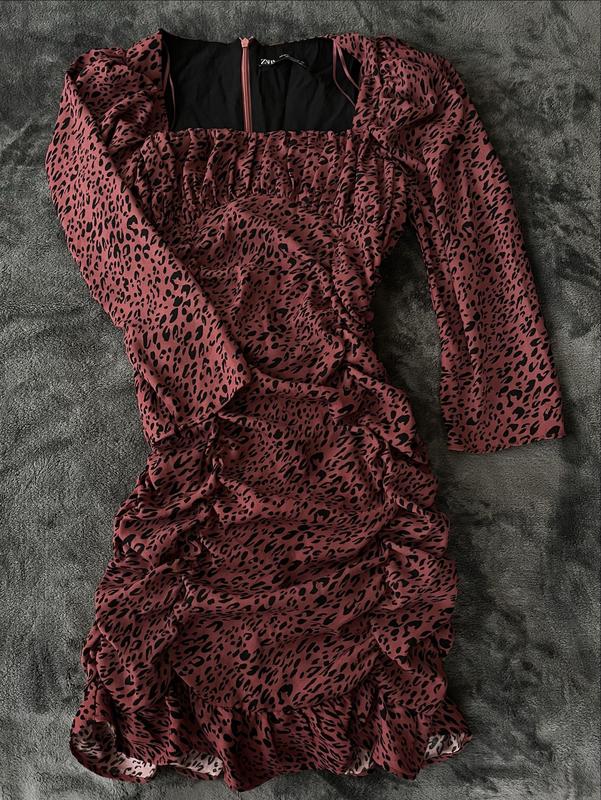 Леопардова сукня ZARA, у відмінному стані - без жодних дефектів. Розмір XS. Тканина приємна до тіла, гарно підкреслює силует і виглядає стильно.