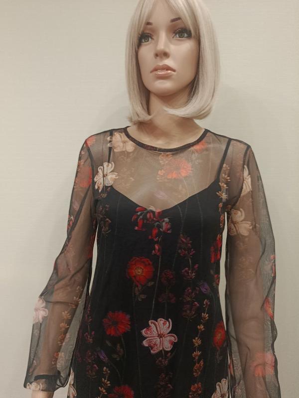 пог 40-48 по подкладу, пог 48 по платью. Подклад имеет по спинке резиночку и регулируемые бретели пот 42, поб 52, рукав 59, длина 88, верх полиэстер 💯, Подклад вискоза 💯, размер указан 10.