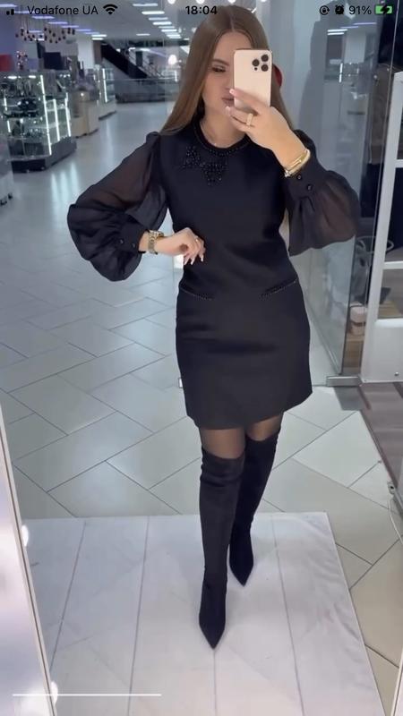 Сукня 💫 Мод. 1301 Тканина : костюмка + шифон Розміри : 42-44, 46-48, 50-52 Колір : чорний Ціна : 900 грн.емера