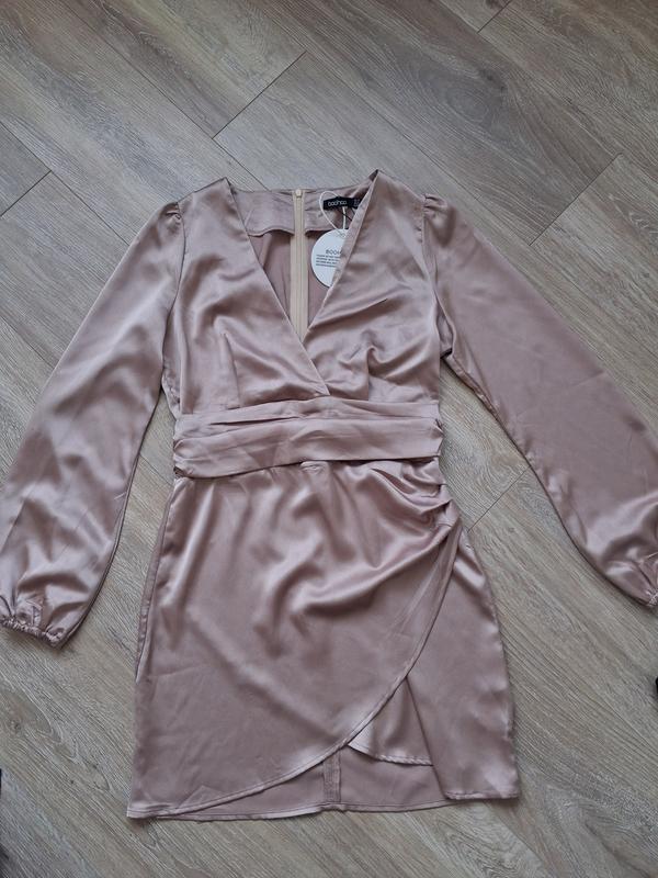 Платье атласное снизу на запах, шикарное качество, приобретала себе,мени укороткое (1.69) длина 80см рукав60с. в груди 44см бедра 45см