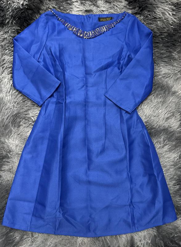 Елегантна сукня насиченого кольору "королівський синій" 💙 Шукаєте ідеальний образ для особливої події чи вечірнього виходу? Ця сукня поєднує в собі класичний крій та вишукані деталі. • Особливості: Горловина прикрашена розкішним декором із каміння, що замінює будь-які аксесуари. Чвертний рукав та приталений силует додають жіночності. • Спинка: Має довгу золотисту блискавку, яка є стильним акцентом. • Тканина: Якісний поліестер, добре тримає форму, не мнеться (див. фото бірки). • Бренд: ANIBOBA. • Стан: [ Нова ]. Загубилось декілька камінців, можна приклеїти нові, або взяагалі зняти верх. В ціні врахувала, виглядає ідеально на тілі, наче колокольчик тримає форму. Розмір Хс-С Всі бірки на фото, фото на собі не роблю. ✨ Додайте туфлі на підборах — і ваш образ неперевершеним.