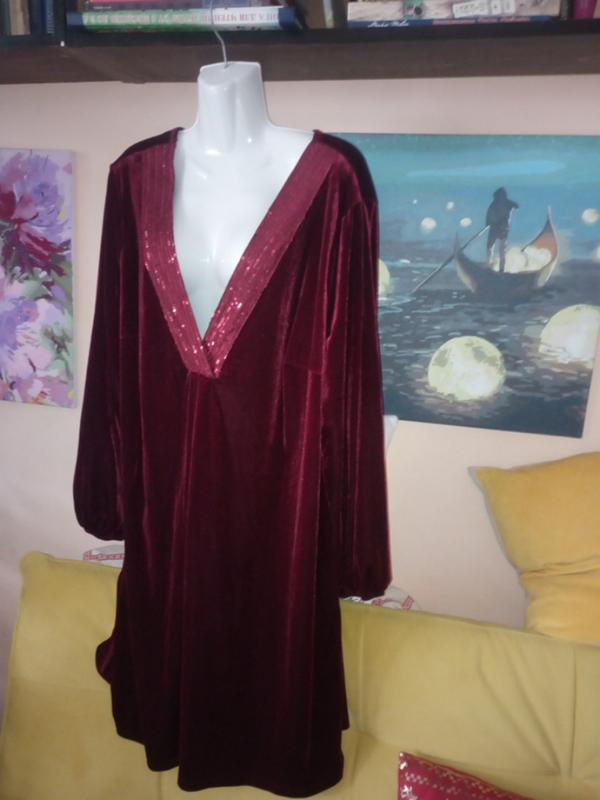 Длина 98 см, длина рукава от горловины 78 см, пог 68 см, пост 84 см. Ткань - бархат, хорошо тянется.
