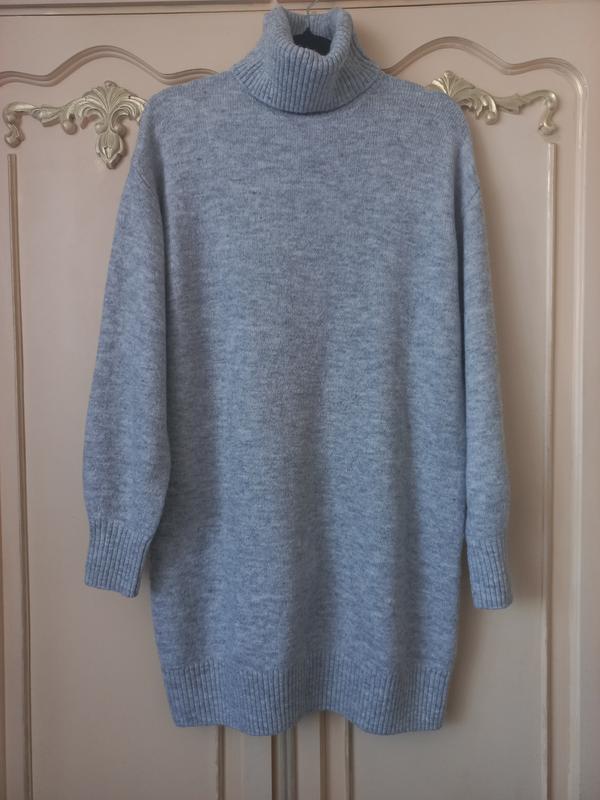 Стильное платье-свитер, размер М, свет серого цвета, Пог 58см, плечи 54см, рукав от шеи 78см, длина 84см, состав: 50% акрил, 44% полиэстер, 5% шерсть, 1% емкая, мягкий, приятный на ощупь, вдете один раз.