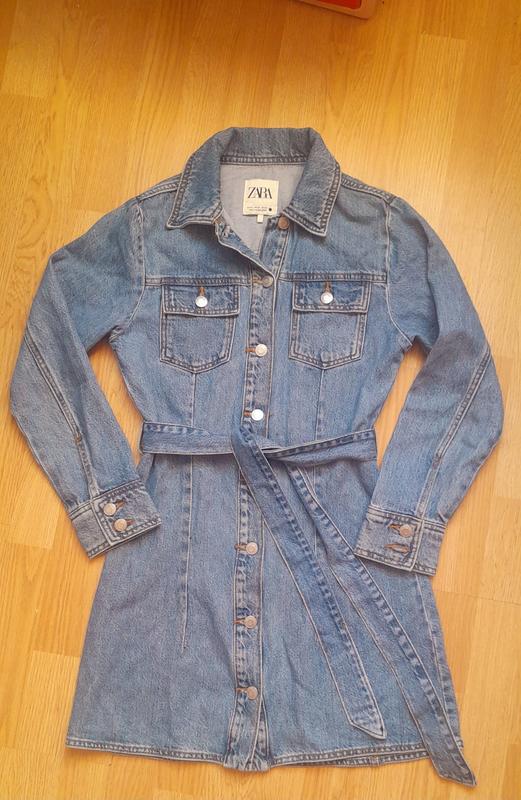Джинсова сукня Zara, рр хс, Плечи полуобхват 36 см, полуобхват талии 38 см полу охват бедер 44см. Длина платья 82 см рукав от плеча 56 см Джинс плотный,гарно держит форму. Есть нюанс по строчке на талии, в цену учтены.