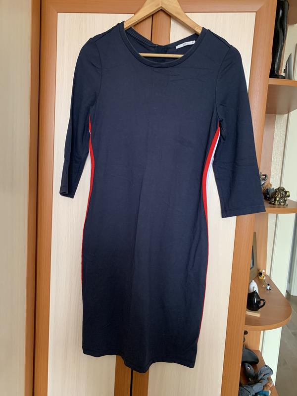 Довжина від плеча 93 см Напівокружність грудей 42 см Напів обʼєм талії 39-40 см Напів обʼєм стегон 49 см Рукав 3/4 довжина 46-47 см Сукня з вставками-лампасами по боках, нагадує сукню поло