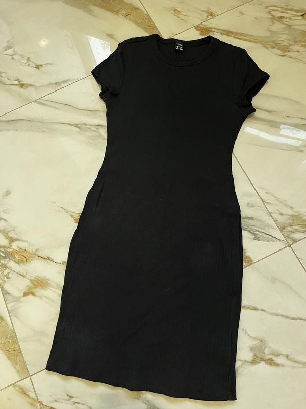 Хороша чорна , класична та повсякденна сукня в рубчик