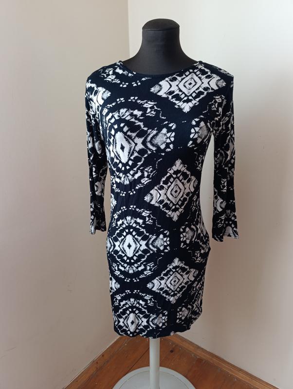 Продам платье стильное брендовое,черного цвета в ромбики. Размер 40.Замеры: ширина плеч 42, полуобхват груди 42, длина рукава 44, длина платья 76.