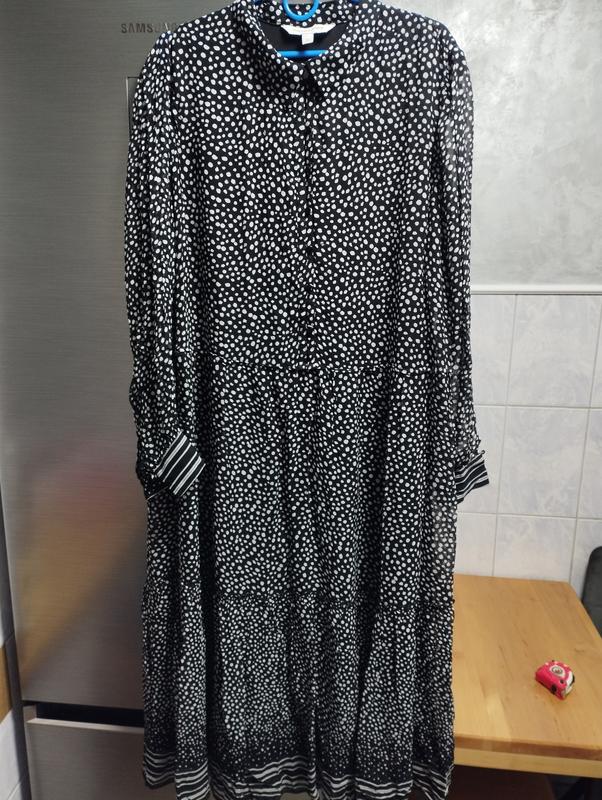 красивое платье ярусное в горох на подкладе в размере 18, имеет небольшую зацепку на последнем фото замеры пог 60, рукав 63, длина 120