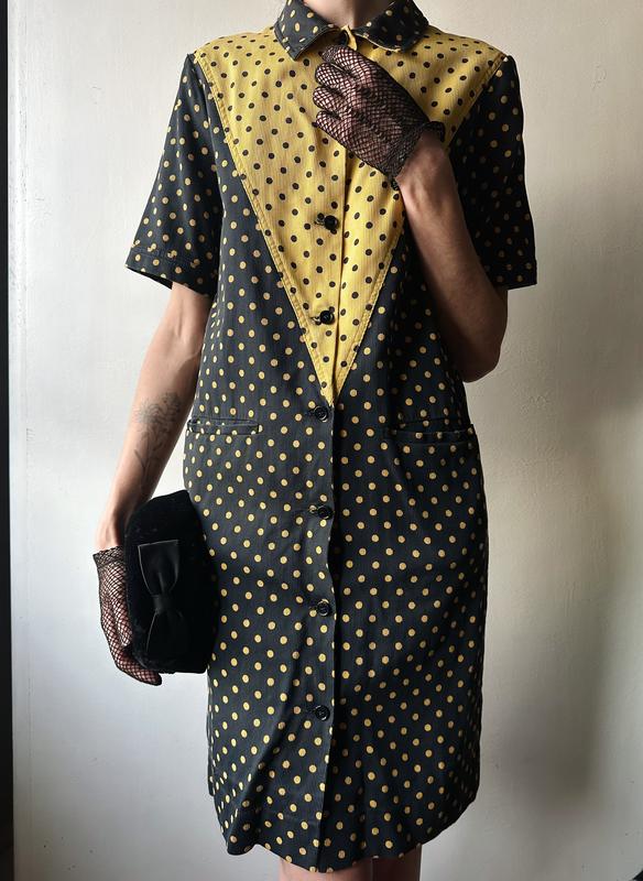 Valentino - культовий італійський модний дім, заснований Валентино Гаравані. Лінія Miss V (Miss Valentino) була створена як більш молода, жіночна та носибельна версія основної колекції, але з тією ж якістю та увагою до деталей. •Плаття 80-90 тих років Стан вінтажний, тканина трохи втратила колір Плаття з бавовни, підкладка з купро ( є пошкодження) Пог 46 Плечі 40 Довжина 100