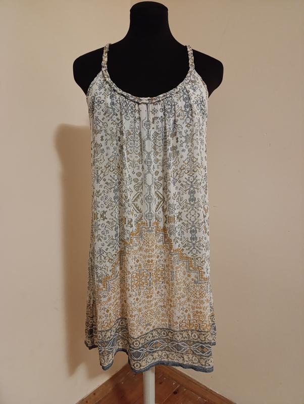 Платье стильное брендовое молодежное на бретельках.С геометрическим орнаментом.Размер S. Замеры: Полуобхват груди 46, длина платья 80.