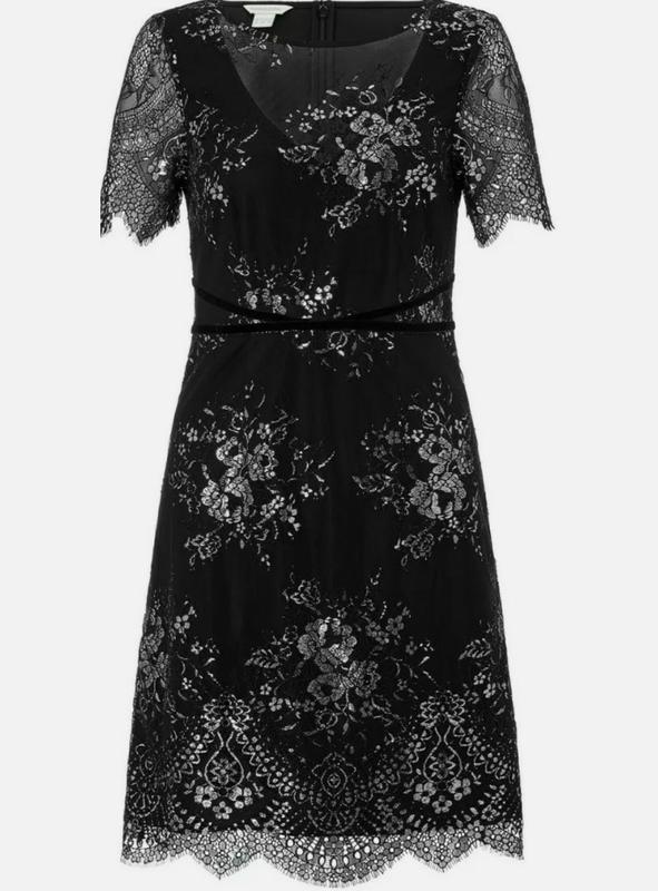 Вечерние черное кружевное платье с короткими рукавами черное с серебром украшено бархатным пояском