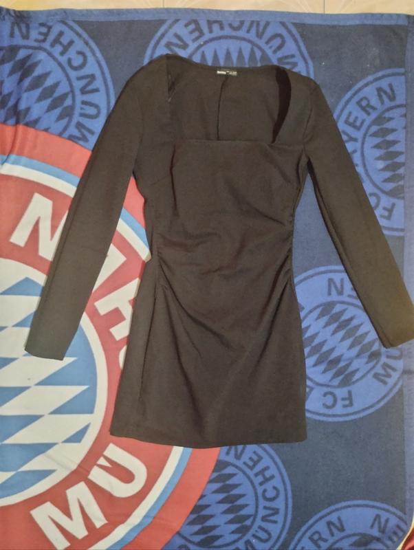 Черный цвет, ткань хорошо тянется, красиво садится по фигуре, размер S