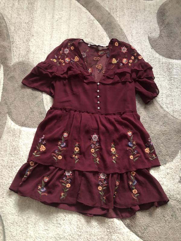 Міні- сукня у вишиті квіти ; приталена та пишна знизу
