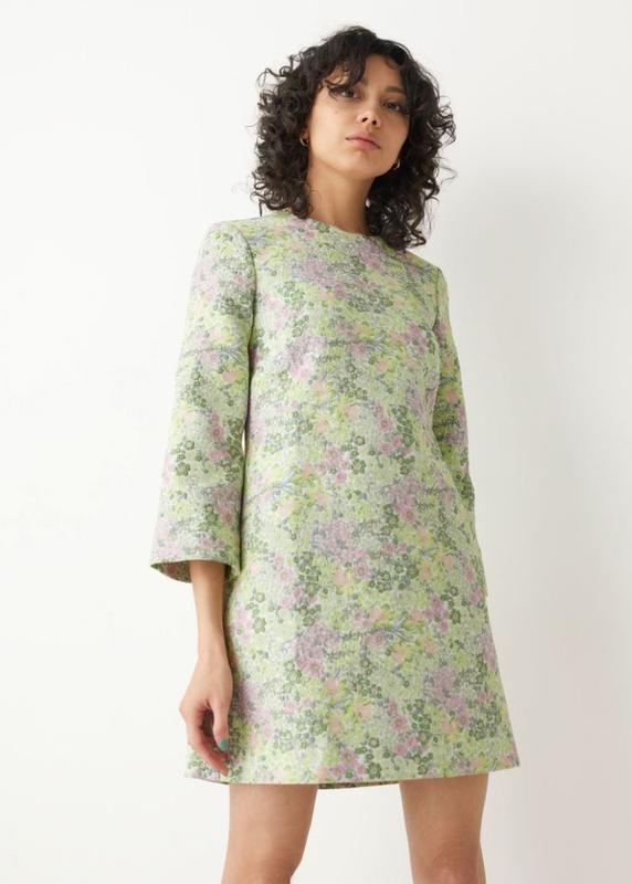 Міні-сукня з жакарду з відкритою спиною, що застібається на дві кнопки на шиї.