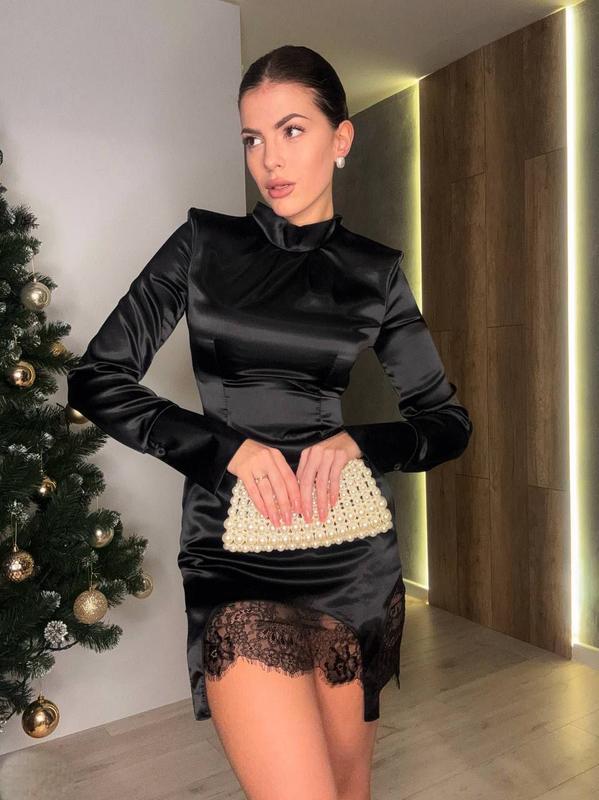 Фото РЕАЛ Сукня Модель #708 Тканина: королівський атлас преміум якості + спідниця із мережева Розмір: 42-44, 44-46 Кольори: білий, шоколад, чорний По справжньому королівська сукня із щільного преміум якості атласу Стильна, сучасна, витончена, елегантна, із перчинкою по низу сукні По заду на змійці, на шиї завязки, спідничка із мережева окремо Ціна 1420 грн