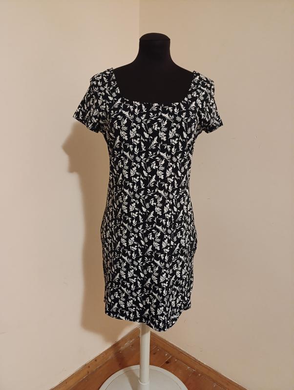 Платье стильное брендовое, черного цвета, размер S. Черного цвета с цветочным принтом. Замеры: ширина плеч 40, полуобхват груди 50, длина платья 84.