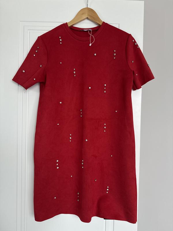 Червоне плаття Za Розмір вказано М Орієнтуйтеся по замірах Пог 50 Поб 55 Довжина 86 Плечі 42 Плаття не було у вжитку, тільки примірка