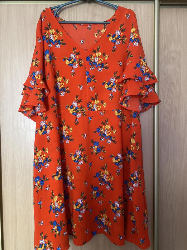 Легке літнє плаття, червоне. Із квітковим принтом. На обхват грудей до 125 см. Якщо більше, то буде в обтяжку. Тканина не тягнеться.