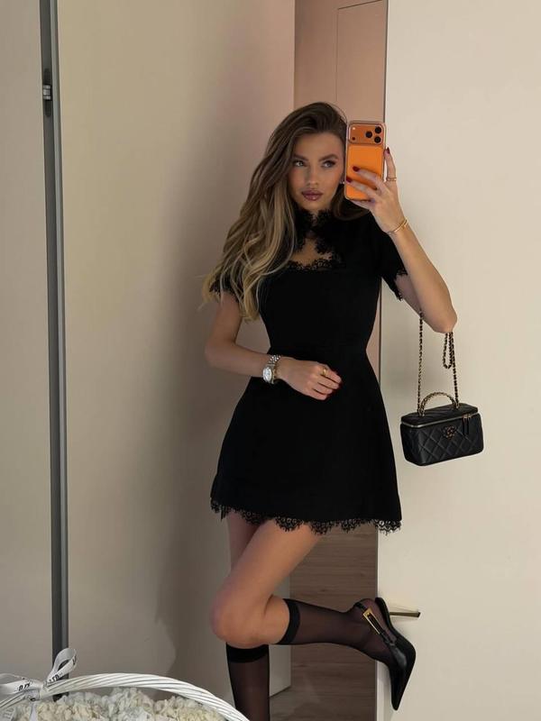 Сукня ▫️Тканина: турецький костюмка , оброблена мʼяким мереживом ▫️Розміри: 42-44, 46-48 ▫️Кольори: чорний На горловині робочий ґудзик, на спинці блискавка