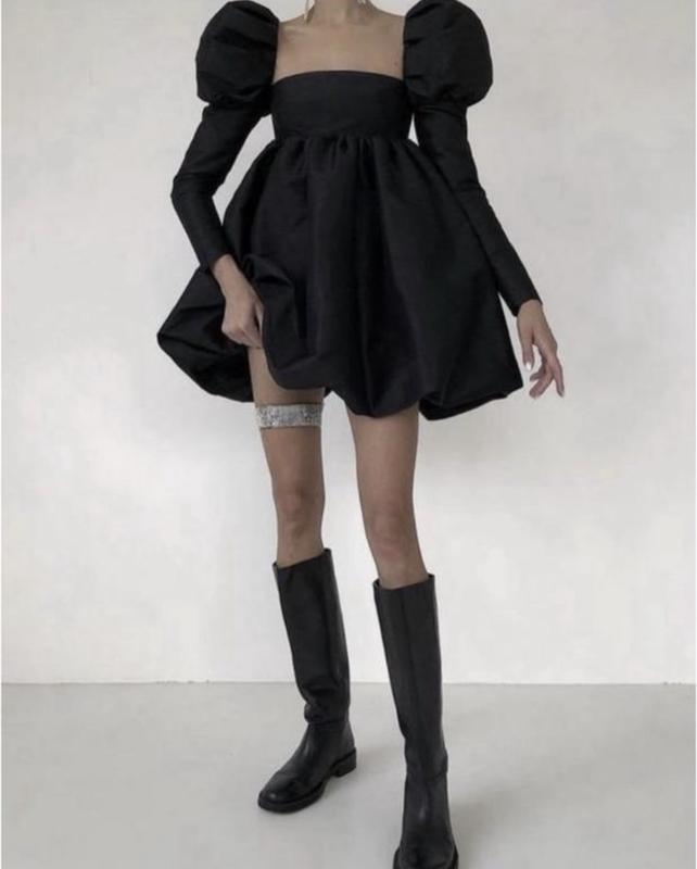 Чорна пишна сукня. Розмір м Тканина костюмка люкс + підкладка креп дайвінг Сукня з пишною спідницею та обʼємними рукавами , спідниця на підкладці . Така ж пишна як на фото Вдягнула раз , тому можна сказати що нова